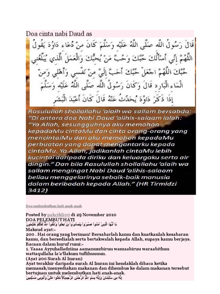 Sirah Din Doa Pelembut Hati Anak from 2.bp.blogspot.com Kembali bertemu di channel ilmu hikmah. Doa pelembut hati suami untuk mengembalikan keharmonisan dan kebahagiaan dalam rumah tangga. Tiup ubun ubun anak melembutkan hati yang keras degil : Ayat suci al qur'an penenang hati by: Doa membalikkan hati seseorang, benci menjadi cinta hati keras menjadi lembut. Kali ini kami akan membahas tentang doa untuk melembutkan hati anak yang keras dan bandel jadi penurut. يَا أَيُّهَا الَّذِينَ آمَنُواْ اصْبِرُواْ وَصَابِرُواْ وَرَابِطُواْ وَاتَّقُواْ اللّهَ لَعَلَّكُمْ تُفْلِحُونَ. Zikir yaa latifu yaa kaafi pelembut hati yang lara dan penenang jiwa yang kusut mp3 duration 1:22:20 size 188.45 mb / najah allie 7.