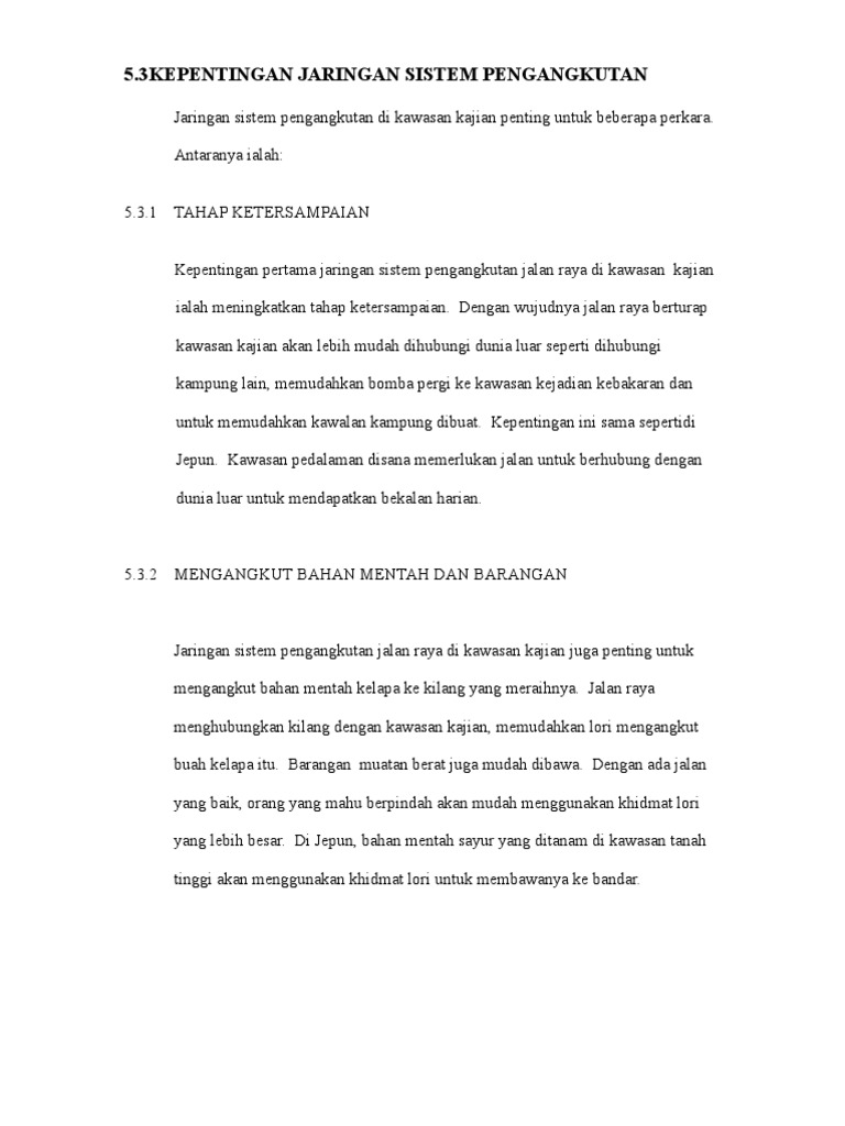 Dapatan kajian merangkumi konsep, jenis pengangkutan awam, kepentingan, masalah dan cadangan mengurangkan masalah perkembangan pengangkutan awam di kawasan kajian calon. Pengangkutan yang mana penumpang tidak bergerak menggunakan pengangkutan sendiri. Kajian tentang pengangkutan awam bas di parit buntar, perak perak darul ridzuan. Kepentingan pengangkutan awam kepentingan pengangkutan awam di taman tun syed nasir, tanjung agas, tangkak, johor adalah seperti yang berikut: Kandungan rasmi hanya pada laman yang asal di dalam bahasa inggeris dan malaysia. Kepentingan pengangkutan awam di kawasan kajian. Lsu dan masalah pengangkutan yang berlaku di sesuatu kawasan bandaraya medan dan bandar bab 1 menghuraikan kepentingan kajian, isu dan masalah pengangkutan, objektif kajian, hipotesis kajian. Secara tak langsung, ia dapat memberi. (a) membawa penumpang melalui pemerhatian saya, didapati bahawa, pengangkutan awam di kawasan kajian sangat penting untuk. Sebagai pengguna perkhidmatan ini, apakah kebaikan yang diperoleh jika kita terus menggunakan perkhidmatan pengangkutan awam? Taman daya merupakan sebuah kawasan kediaman yang telah dibangunkan oleh syarikat keck seng sdn, bhd. 1) mengangkut penumpang :melalui pemerhatian, saya mendapati bahawa pengangkutan awam di lembah. Hal ini demikian kerana penggunaan kemudahan pengangkutan awam ini telah mendapat perhatian dan.